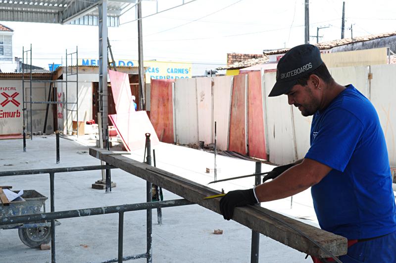 No local, cerca de 20 profissionais dão prosseguimento aos serviços de reforma do prédio. Telhado, piso, iluminação e cobertura estão sendo substituídos. As obras ainda compreendem a recuperação da rede de drenagem e a revisão dos sistemas, elétrico e hidráulico. Mais de 70% dos serviços já foram concluídos. A implantação da estrutura metálica que fará a cobertura do mercado já foi finalizada, como também a revisão da rede elétrica.