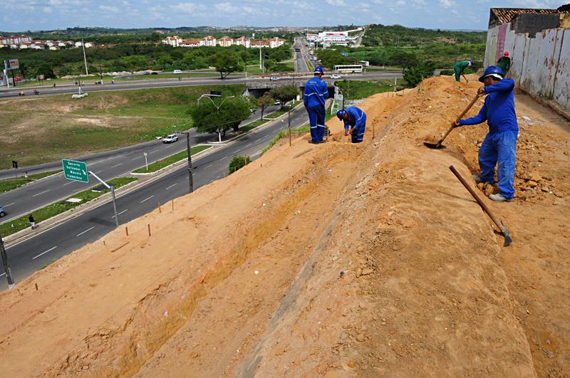 Para garantir a segurança da população que reside em áreas de risco da capital, a Prefeitura de Aracaju, por meio da Empresa Municipal de Obras e Urbanização (Emurb), está realizando na encosta do bairro América, zona norte da capital, os serviços de contenção da estrutura.