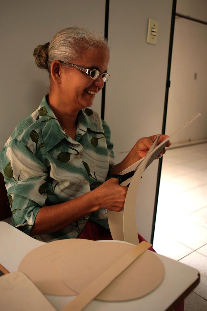 Telma Maria trabalha como professora da Fundat há quatro anos e ensina os mais variados cursos, como biscuit, fabricação de ovos de páscoa e de caixas de presente. "Esse curso é excelente, as alunas saem muito satisfeitas e com expectativa de mudança", explica ela. Durante uma semana, a professora ensina a cortar os moldes, montar e decorar as caixas dos mais variados formatos.