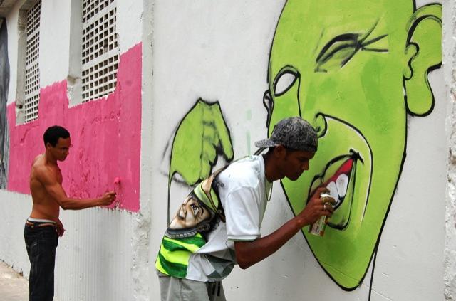 Durante todo o dia de hoje, grafiteiros também tiveram a oportunidade de mostrar seus trabalhos nos muros do prédio da Alfândega e do Beco dos Cocos. Rodrigo Ferreira, um dos mais de dez artistas presentes no local, disse estar feliz de praticar a cidadania através da arte. "Nós lutamos contra o preconceito e o desrespeito à humanidade. O grafite sempre mostra uma arte e passa uma mensagem. A de hoje, por exemplo, é a de um trânsito mais legal para todo mundo", enfatiza.