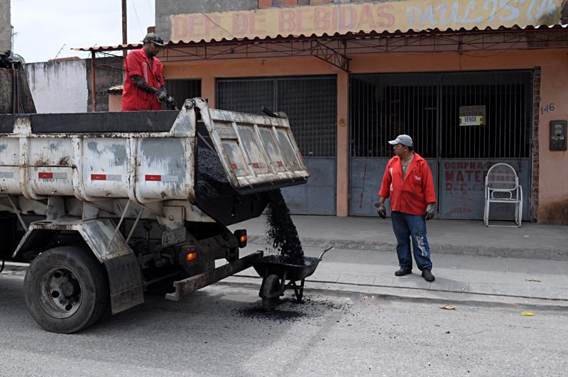 Inicialmente, os profissionais fazem a limpeza do local para, em seguida, aplicar o asfalto a uma temperatura de 200ºC. A conclusão do trabalho acontece com o uso de um rolo compressor para a compactação da borra asfáltica, além da utilização de um rastilho, espécie de pá, que serve para aplanar o asfalto.