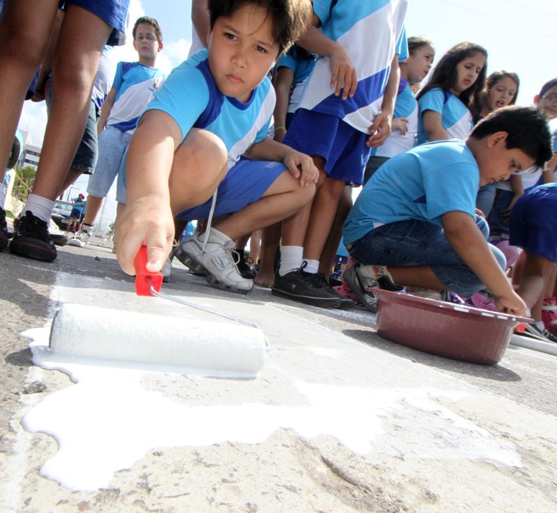 Na manhã desta sexta-feira, 30, foi a vez dos alunos do colégio Intellectus, localizado no bairro Coroa do Meio, receberem a campanha Pintando a Faixa, da Superintendência Municipal de Transporte e Trânsito (SMTT). Em uma atividade lúdica e simbólica, crianças de três a onze anos pintaram a faixa de pedestres em frente ao colégio e aprenderam mais sobre a importância de respeitar as leis de trânsito.