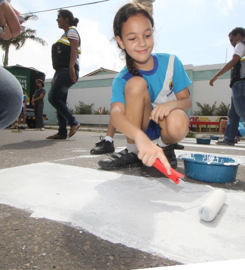 Para a ação, o trecho da Avenida Mario Jorge Menezes Vieira, que dá acesso ao colégio, foi fechado para que os alunos ocupassem o espaço com tranqüilidade. A pequena Giovana Castro, aluna do 3º ano do ensino básico, aprovou a mobilização. "Gostei muito de hoje, foi super legal, corremos, brincamos de pega-pega aqui na rua, andei de bicicleta e agora estou pintando a faixa. É muito bom brincar e aprender", disse.