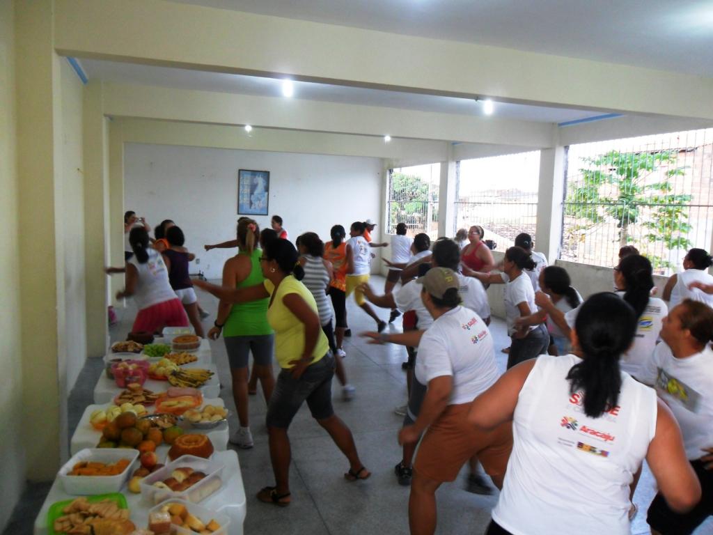 Uma comemoração saudável. Assim pode ser definida a aula de atividade física que a Secretaria Municipal de Saúde (SMS) proporcionou aos alunos do pólo da Academia da Cidade do bairro Lamarão, zona Norte de Aracaju, na tarde de quinta-feira, 29. A aula alusiva ao Dia do Idoso contou com palestra sobre nutrição, aula aeróbica, sorteio de brindes e ao final um lanche saudável.