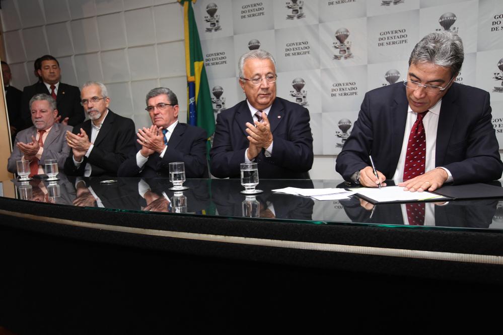 O prefeito Edvaldo Nogueira participou na manhã desta terça-feira, 4 de outubro, da solenidade de transmissão do cargo de governador do Estado de Marcelo Déda para o vice, Jackson Barreto. Ele assume o Poder Executivo por 14 dias, a partir desta quarta-feira, 5, período em que Déda estará na Itália participando de um encontro com empresários brasileiros e investidores europeus.