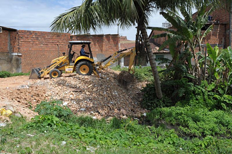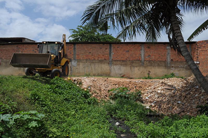 Para garantir a correta utilização dos espaços públicos e coibir ocupações irregulares, a Prefeitura de Aracaju, por meio da Empresa Municipal de Obras e Urbanização (Emurb), realizou na manhã desta quinta-feira, 06, a retirada de blocos e areia que estavam aterrando irregularmente a área de um canal localizado na Travessa Imperatriz Tereza Cristina, bairro Novo Paraíso, zona norte da capital.