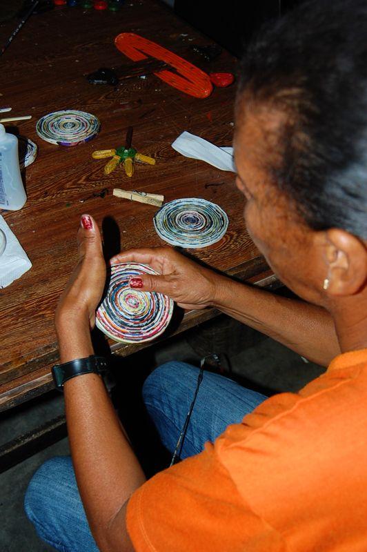 Durante três semanas de trabalho intenso, as monitoras da Oficina de Papel confeccionaram cerca de 200 produtos para uma mostra e distribuição no evento 'Dia de Todas as Crianças'. Abusando da criatividade, as monitoras produziram 48 bonecos, 38 cestas, 38 pirulitos, 68 bolas e 17 animais, tudo com papel reciclado de jornais e revistas.
