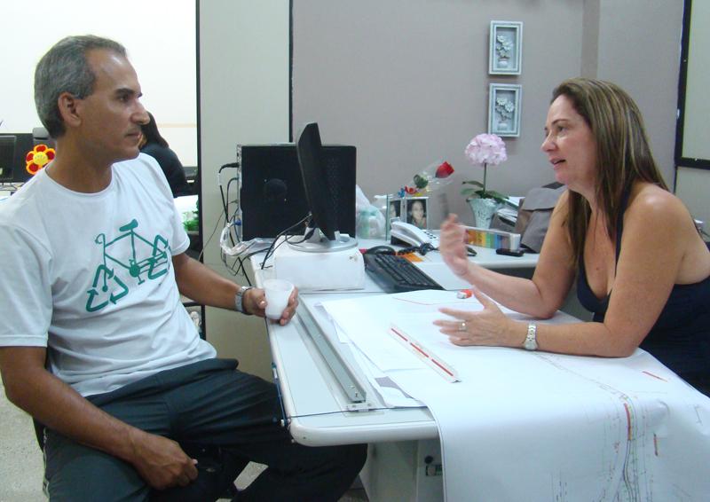Na manhã desta sexta-feira, 14, a arquiteta Angélica Rocha, responsável pela elaboração do projeto, conversou com o ciclista Marcos Sérgio Reis, 50, sobre as obras de reurbanização do calçadão da Beira Mar. A arquiteta apresentou o projeto e tirou dúvidas quanto à execução dos serviços. Marcos Sérgio Reis utiliza diariamente a bicicleta como meio de transporte para se deslocar até a universidade, que fica nas proximidades da avenida Beira Mar. O professor universitário elogia a iniciativa da Prefeitura de Aracaju.