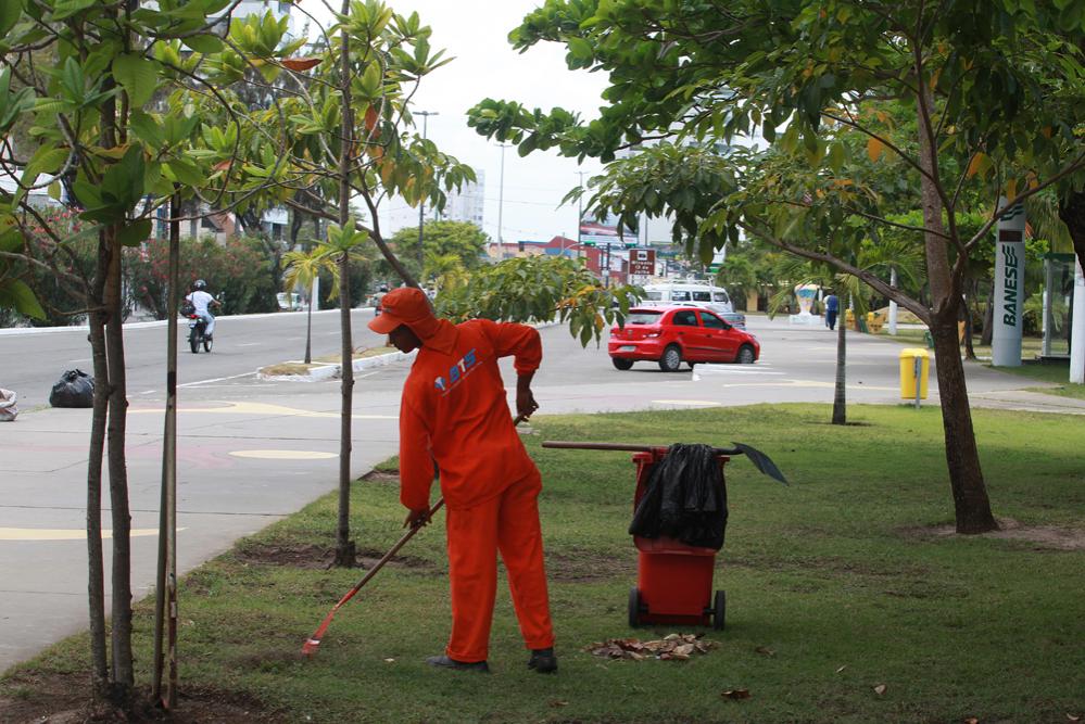 No calçadão do bairro 13 de Julho, zona Sul da capital, por exemplo, os agentes de limpeza são tão presentes quanto as pessoas que escolhem o local, seja para realizar atividades físicas ou apenas relaxar. Diariamente, 1.080 funcionários da Emsurb executam os serviços de varrição, capinação, coleta domiciliar, pintura de meio-fio e manutenção de placas e canteiros.
