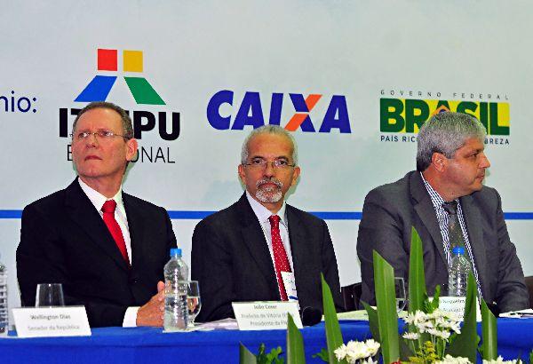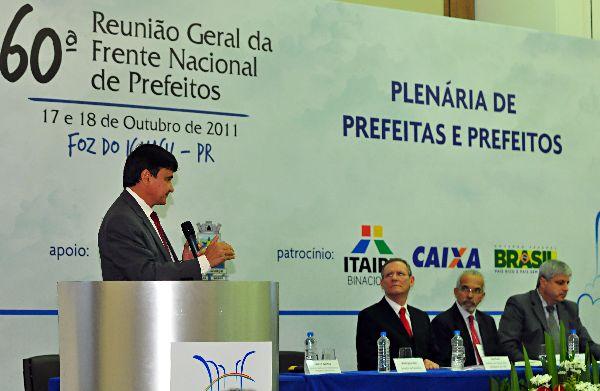 Com a presença do senador Welington Dias (PI), autor de projeto de lei que altera a distribuição dos royalties, a partilha das rendas do petróleo foi destaque da pauta da Reunião Geral, realizada em Foz do Iguaçu. A mesa teve a participação do presidente da FNP, João Coser, do secretário geral da FNP, Edvaldo Nogueira, do secretário de Estado de Desenvolvimento (ES), Márcio Félix e do subchefe de Assuntos Federativos da Presidência da República, Olavo Noleto.