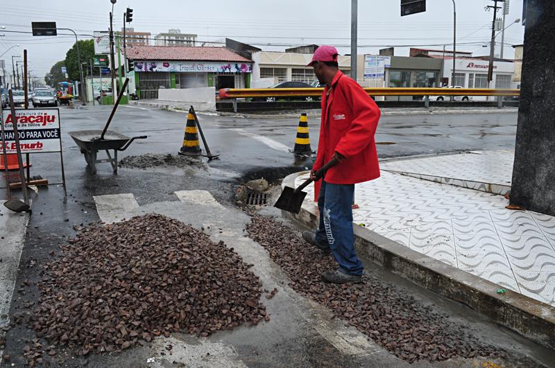 Na manhã desta quinta-feira, 20, foram realizados serviços de desobstrução da rede de drenagem em mais de dez localidades da capital, entre elas, a avenida Anísio Azevedo, 13 de julho, rua Porto da Folha, Suíça, e avenida Mário Jorge, Coroa do Meio.