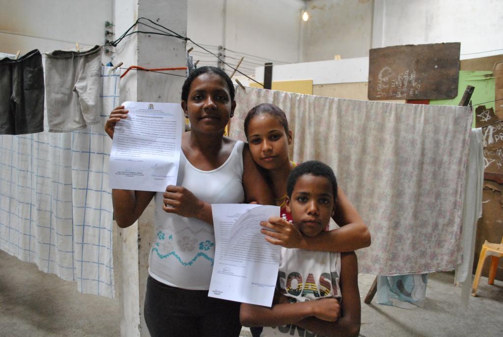 Emocionada, Maria Rosalina Sacramento Silva, mãe solteira de quatro filhos, exibiu na última sexta-feira, 21, o termo de responsabilidade emitido pela Prefeitura de Aracaju, que garantia à sua família o benefício do auxilio moradia, no valor de até R$300.00. Retirada da área de risco conhecida como Preol, no bairro Santa Maria, Rosalina foi encaminhada para a moradia provisória em maio passado, juntamente com outras famílias.