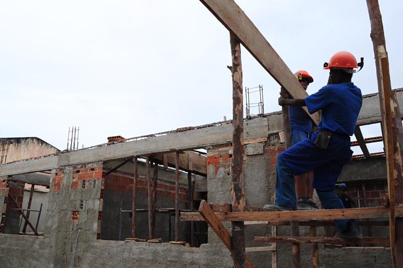 Esta semana a equipe composta por 13 profissionais continua trabalhando na montagem da laje do primeiro pavimento de todo o prédio e implantando o piso da quadra poliesportiva. Até o momento, os profissionais já concluíram várias etapas, como a estrutura de fundação, construção de pilares, instalação do sistema de esgoto bem como a construção da sala de professores, de informática, vídeo, biblioteca, diretoria, secretaria e cozinha.