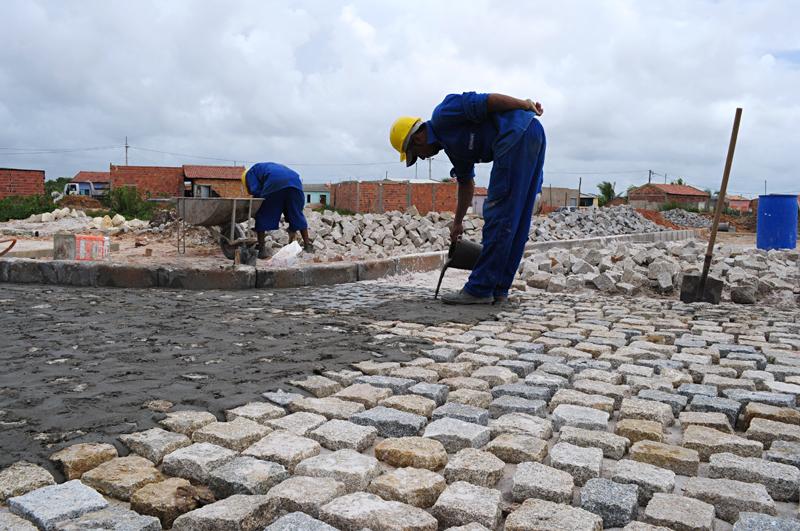 Esta semana, as equipes da Emurb prosseguem com a execução dos trabalhos. Nas ruas A, I, J, N, os profissionais se revezam na realização dos serviços de implantação da rede de drenagem com a colocação das caixas coletoras, pavimentação em paralelepípedo das vias e construção do meio- fio. Aproximadamente 50% dos serviços foram finalizados e a obra segue o cronograma estabelecido.