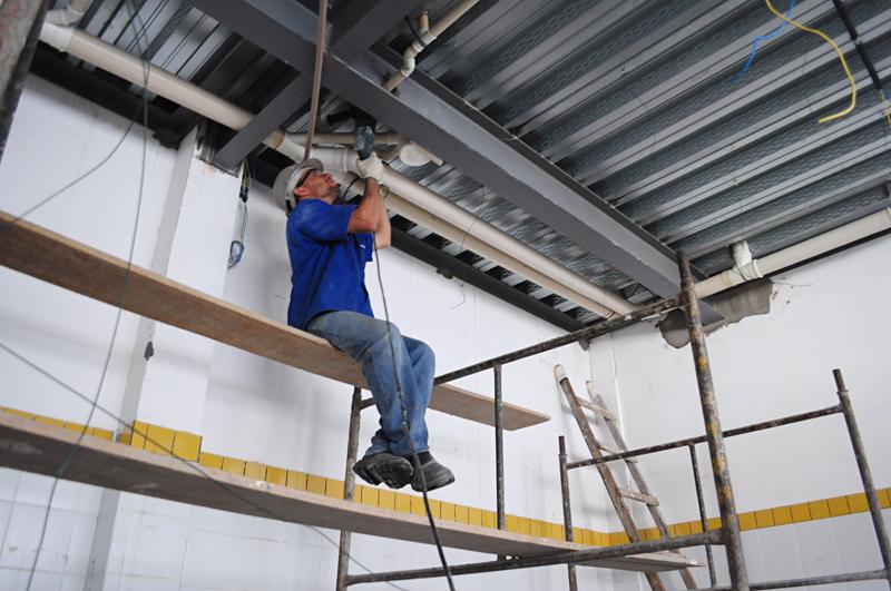 Atualmente, 40 profissionais trabalham de segunda a sábado com o objetivo de adiantar as obras. Os serviços estão em fase de finalização. As equipes se revezam na conclusão da pintura do novo bloco de salas, na concretagem do piso do reservatório de água e na implantação do forro dos novos compartimentos. A expectativa é de que os serviços sejam concluídos em até 30 dias.