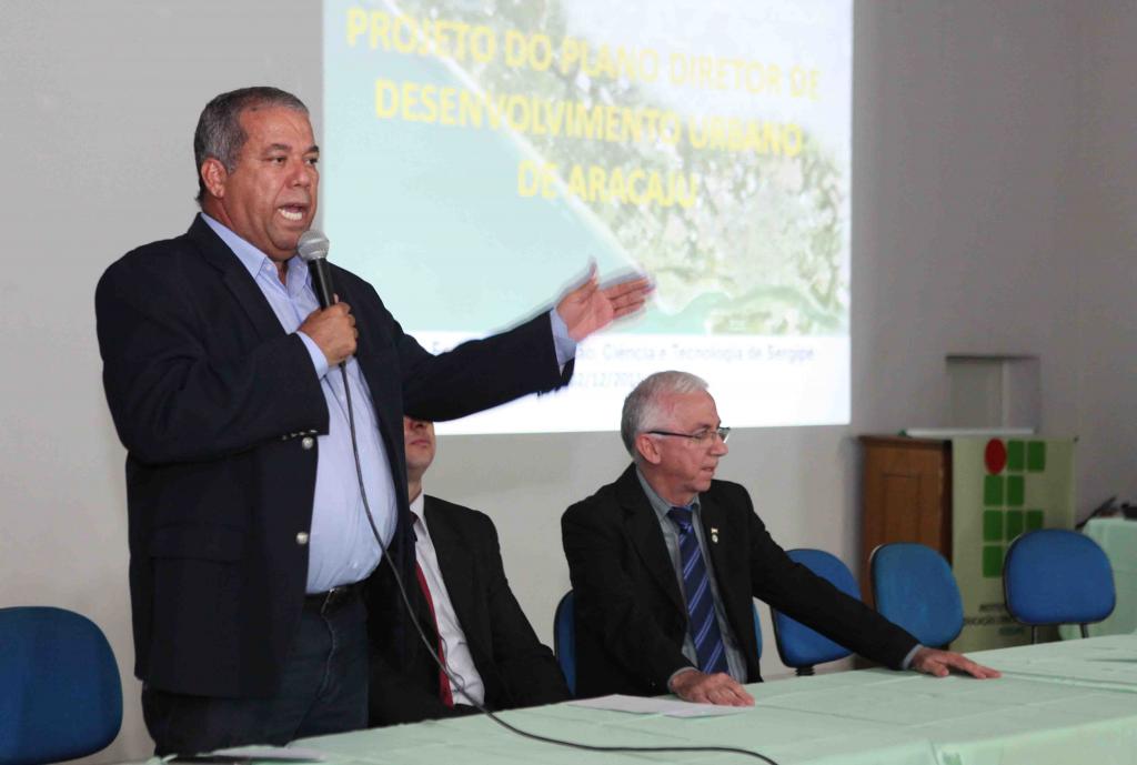 O prefeito em exercício da capital, Emmanuel Nascimento, compareceu à audiência pública do Plano Diretor de Aracaju, realizada na noite desta sexta-feira, 2, no auditório do Instituto Federal de Sergipe (IFS), antigo Cefet. Ao lado de Johny Marcos, presidente em exercício da Câmara de Vereadores, Emmanuel Nascimento reforçou a importância das discussões do Plano Diretor nos principais bairros, instituições de ensino, além de entidades públicas e privadas da capital.