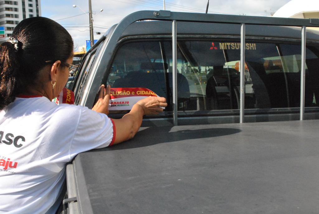 A campanha Inclusão e Cidadania, promovida pela Prefeitura de Aracaju, foi realizada na manhã desta segunda-feira, 5, na rótula entre a avenida Hermes Fontes e o bairro Jardins. Durante quase duas horas, cerca de 50 funcionários da Secretaria Municipal de Assistência Social e Cidadania (Semasc) estiveram planfletando, fazendo a colagem de adesivos e conversando com o público.