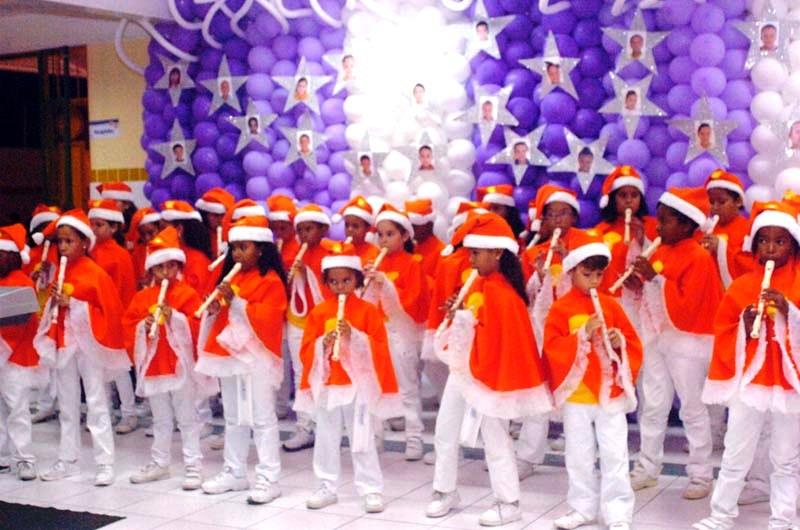 Para incentivar o contato com a música, as educadoras prepararam os pequenos para apresentações especiais. "Utilizamos temas do mundo imaginário infantil que pudessem encantar a todos. Ainda no campo da música, convidamos o Maestro Carlos Magno, para que trouxesse seus alunos e demonstrasse a importância da musicalidade para a infância", completou a coordenadora Rosana Maria.