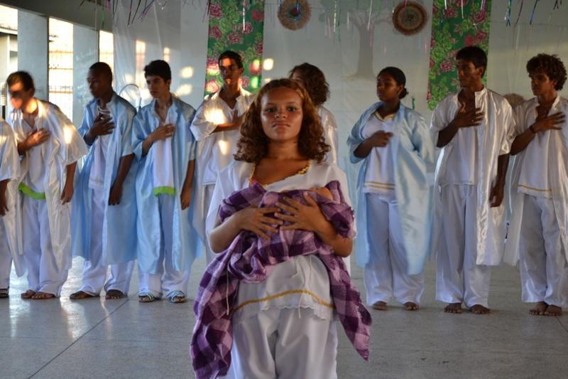Nesta quinta-feira, 29, alunos da Escola Municipal de Ensino Fundamental (Emef) Jaime Araújo, localizada no bairro Soledade, assistiram ao Auto de Natal, encenado pelo grupo de dança e teatro 'Os Desinibidos'. A iniciativa, viabilizada pelo historiador e arte-educador da Secretaria Municipal de Educação (Semed), Rivaldino Santos, tem como objetivo principal assegurar o envolvimento dos estudantes em áreas que envolvam literatura e educação artística.