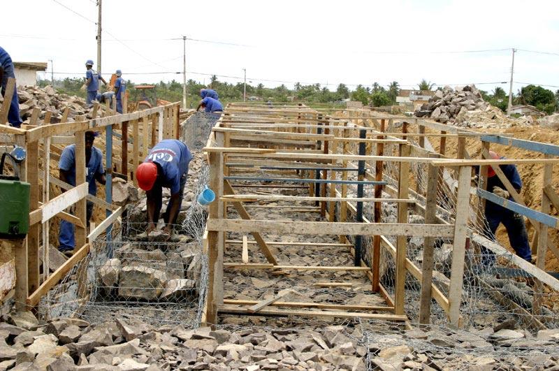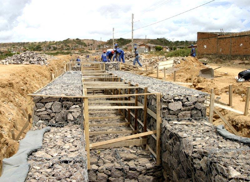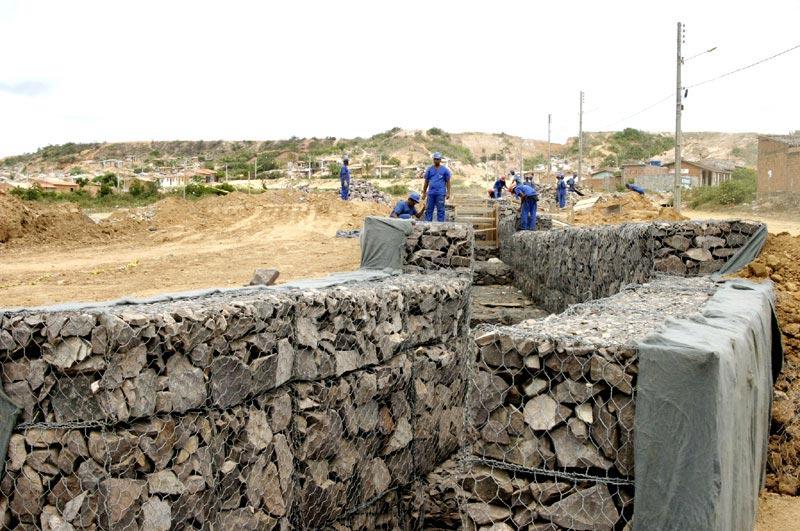 Iniciadas no mês de fevereiro, as obras que compreendem o Projeto Santa Maria Protege avançam mais uma etapa na restituição do canal do bairro. Realizada pela Prefeitura de Aracaju, em parceria com o Governo Federal e Petrobras, a obra quando pronta irá beneficiar milhares de pessoas da área. O canal servirá de escoamento das águas pluviais, evitando possíveis erosões, deslizamentos de terras e conseqüentemente desabamento de casas nos períodos de fortes chuvas. Além dessa melhoria, a retirada dos moradores da área de encosta e sua transferência para novas residências são ações que também fazem parte do projeto. Nessa atual etapa, os funcionários da Construtora Celi dão prosseguimento a um antigo canal que foi demolido e que no momento recebe uma nova estrutura, maior e mais profunda. Segundo o engenheiro responsável pela obra, Diogo Martins, a construção do chamado canal de gabião está num ritmo satisfatório. Estamos com um ritmo muito bom de trabalho. Se continuarmos assim, dentro de no máximo 45 dias estaremos concluindo essa etapa da obra, disse. O canal que tem aproximadamente 400 metros de extensão é chamado de gabião por ser composto por manta geotástil, tela metálica e pedras, explicou o engenheiro. Diogo Martins informou ainda que nessa semana será iniciada uma outra etapa da obra. Estamos concluindo o acesso das máquinas para o topo do Morro do Avião, mas ainda essa semana começaremos os serviços de terraplanagem no local, garante.