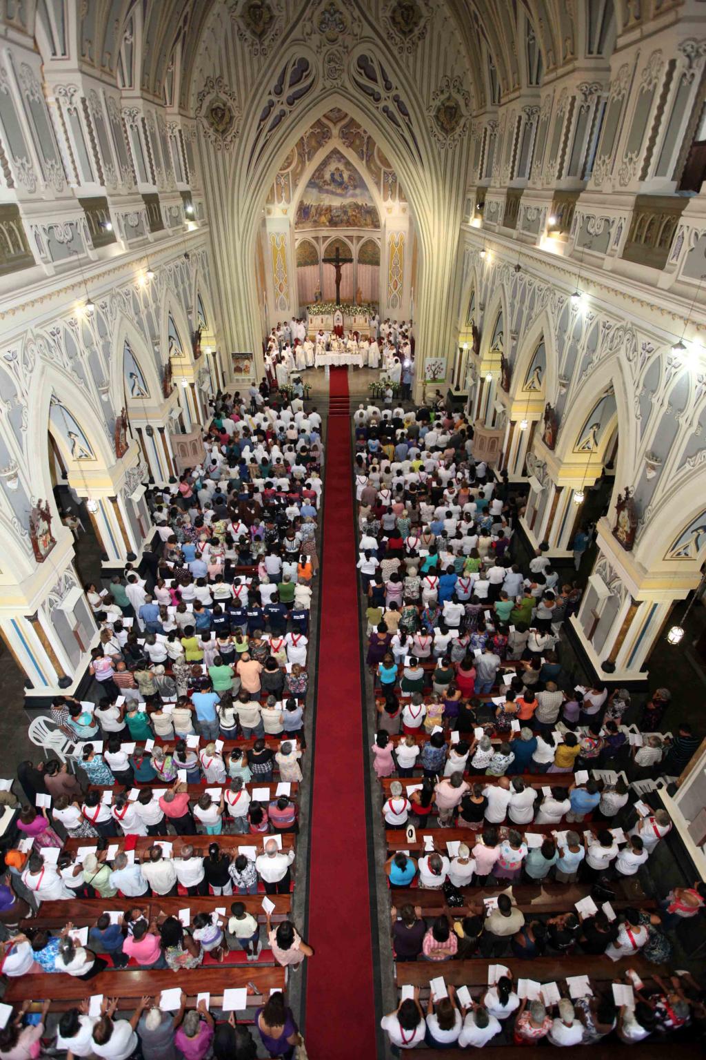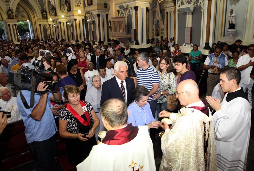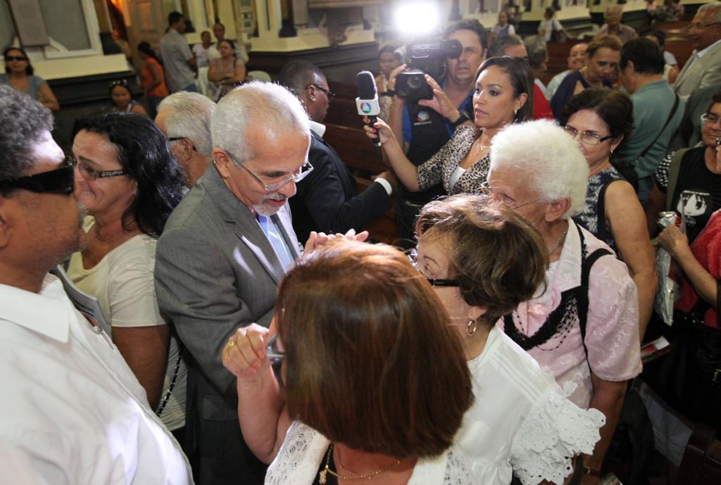 Milhares de fiéis lotaram a catedral metropolitana na tarde desta quarta-feira, 18, para congratular o arcebispo de Aracaju, Dom José Palmeira Lessa, pelos seus 70 anos. Entre fiéis, parentes, amigos e sacerdotes e vindos de várias partes do Brasil e do mundo, o prefeito de Aracaju, Edvaldo Nogueira, também esteve presente à missa de ação de graças e parabenizou o aniversariante pela data especial.