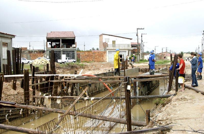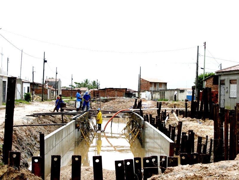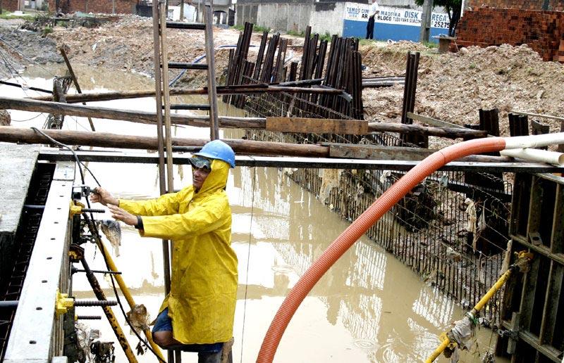 A Empresa Municipal de Obras e Urbanização (Emurb) executa a construção, com revestimento em concreto, de 150 metros de canal localizado no loteamento Ângela Catarina, bairro Jardim Centenário. Iniciada há oito dias, a obra integra a segunda etapa dos serviços de drenagem e pavimentação realizados em diversas ruas da localidade, evitando transtornos aos seus moradores em períodos chuvosos. Mesmo diante das chuvas, os serviços de assentamento de ferragens e aplicação de concreto estão sendo realizados pelos 16 homens atuantes na obra. “Inicialmente foram feitos serviços de carpintaria para depois fincar as ferragens e fazer a montagem do concreto. Hoje, apesar das chuvas, estamos prosseguindo nos serviços”, declara o carpinteiro José Ferreira da Silva. Segundo Valmor Barbosa, diretor de obras e operação da Emurb, cerca de 90% das ruas do loteamento Ângela Catarina já foram drenadas e assentadas em paralelepípedo. Ele ressalta que o revestimento em concreto do canal dá continuidade às obras de pavimentação do loteamento. “Os serviços já foram concluídos em várias ruas, a exemplo das 1, 2, 3, 4 e D existentes no Ângela Catarina. Para que fosse possível a construção do canal, cerca de 12 casas foram desapropriadas e seus moradores receberam indenizações”, declara.