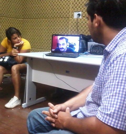 Interatividade e descontração foram o diferencial do encontro, que contou com a participação do ministrante da oficina, Anderson Craveiro, via Skype. Anderson analisou com a equipe de alunos, os principais aspectos do curta e as impressões que eles tiveram ao ver o resultado do trabalho.
