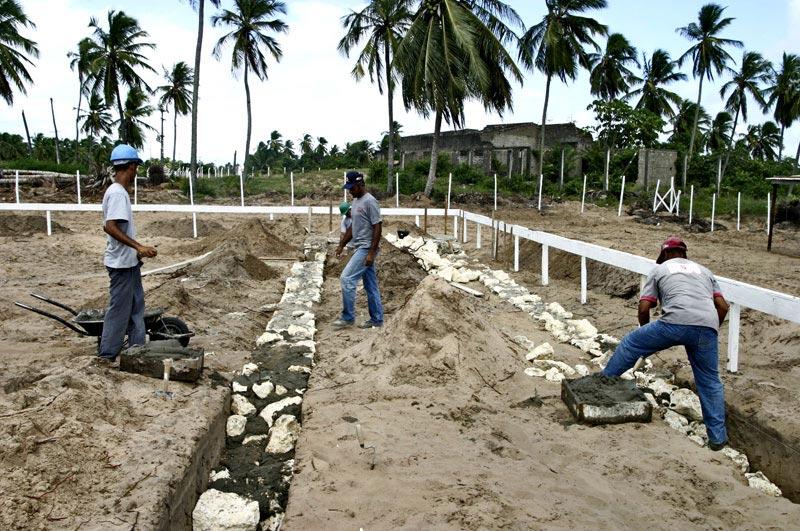 A Prefeitura de Aracaju, por meio da Empresa Municipal de Obras e Urbanização (Emurb) e Secretaria Municipal de Saúde (SMS), está construindo a nova Unidade de Saúde da Família Santa Terezinha, no povoado Robalo. Com o empreendimento pronto, a unidade já existente na Rodovia dos Náufragos, km 6, será desativada. A nova Unidade atenderá moradores dos povoados Robalo, São José, além de adjacências na região do bairro Aruana. “Como o número de habitantes do local subiu, com a entrega dos condomínios do Programa de Arrendamento Residencial, nosso atendimento conseqüentemente também aumentou. Atendemos por dia, cerca de 80 a 100 pessoas, incluindo todos os atendimentos que possuímos”, destaca a diretora da Unidade, Ana Célia Góis. Amplo, moderno e equipado, o futuro posto de saúde contará com gabinete odontológico, sala de aerosol, farmácia, sete consultórios, salas de esterilização, vacinação, observação, curativo, salas administrativas, de reuniões, de espera e recepção. “O posto terá uma grande infra-estrutura, que abrigará ainda banheiros masculinos, femininos e banheiros para portadores de necessidades especiais, bem como sala de utilidades, depósito, área de serviço, copa-cozinha, lixeira e resíduos, além de áreas para jardins”, informa o encarregado da obra, Anderson Santos. Os serviços foram iniciados no dia 16 deste mês, com prazo de execução de 180 dias. O valor da obra é de R$ 447.299,99. “A obra está na etapa de fundação em alvenaria de pedras. Temos pessoas do Robalo trabalhando aqui e pretendemos contratar mais. A comunidade depende muito de uma unidade de saúde com este nível de qualidade”, frisa Anderson. De acordo com Ana Célia, quatro equipes de Saúde da Família trabalharão no novo posto. “Além da equipe que trabalha conosco atualmente, a prefeitura colocará à disposição das comunidades mais três equipes, formadas por médicos, enfermeiros, auxiliares de enfermagem, dentistas e um assistente social, além do pessoal de apoio”, ressalta.