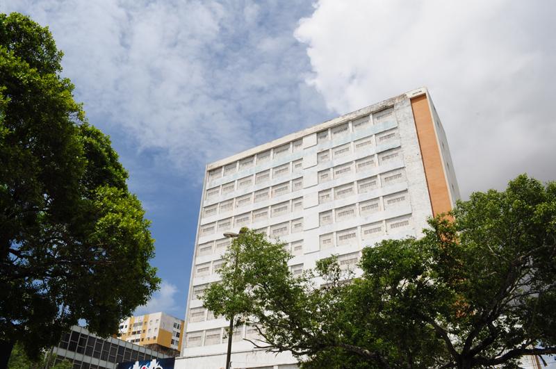 O segundo é o prédio do Hotel Palace, construído em 1959, o empreendimento está abandonado há cerca de 20 anos. Conforme explica Valdson Melo, algumas medidas emergenciais foram tomadas para evitar acidentes, como a troca das janelas de madeira por blocos, desligamento dos elevadores e aterro da piscina.