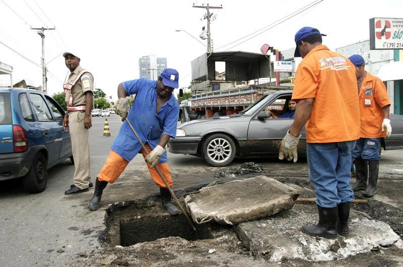 A ação conjunta realizada pela Prefeitura de Aracaju durante a manhã de hoje, através da Empresa Municipal de Obras e Urbanização (Emurb) e Empresa Municipal de Serviços Urbanos (Emsurb), executa trabalhos estratégicos em locais críticos da cidade, devido as fortes chuvas que caem desde ontem, 5. Desobstrução de bueiros, limpezas de canais e operações tapa-buracos são os serviços mais solicitados. De acordo com o presidente da Emurb, Sérgio Ferrari, a empresa vem trabalhando com esses serviços desde o início do ano, já prevendo algum tipo de problema nas vias mais movimentadas da cidade. Desde o início do ano, juntamente com a Emsurb, estamos realizando um trabalho preventivo, agindo em bairros que sofrem com as fortes chuvas, a fim de estarem preparados para essa época do ano, afirmou. Ao todo são cinco equipes para realizar serviços de desobstruções de canais e bueiros e uma para tapar os buracos, que são comuns nesse período chuvoso. Recebemos diariamente cerca de 30 a 40 solicitações da comunidade. Esses pedidos são encaminhados para a coordenadoria de operações, que atende primeiramente os mais emergenciais e em seguida os demais, explicou o presidente da Emurb. Segundo Sérgio Ferrari, os pontos da cidade que mais sofrem com os alagamentos são os bairros Lourival Batista, Porto Dantas, Amintas Garcez, Japãozinho e algumas ruas da Atalaia, além da avenida Hermes Fontes. Nesses locais os serviços estão sendo intensificados e realizados sempre que necessário, disse. Além de conter os constantes alagamentos, ficamos sempre em alerta com os possíveis desabamentos que possam vir a ocorrer. Os locais mais perigosos são os bairros Cidade Nova, Santa Maria, no Morro do Urubu, e na rua México (proximidades da Desembargador Maynard). Para isso, contamos com a parceria da Secretaria Municipal de Assistência Social e Cidadania e da Secretaria Municipal de Saúde, por meio do SAMU, finalizou o presidente do órgão municipal. As equipes da Emurb estão de plantão para atender as emergências detectadas pela população. O telefone para informar ocorrências é 3179-1619.