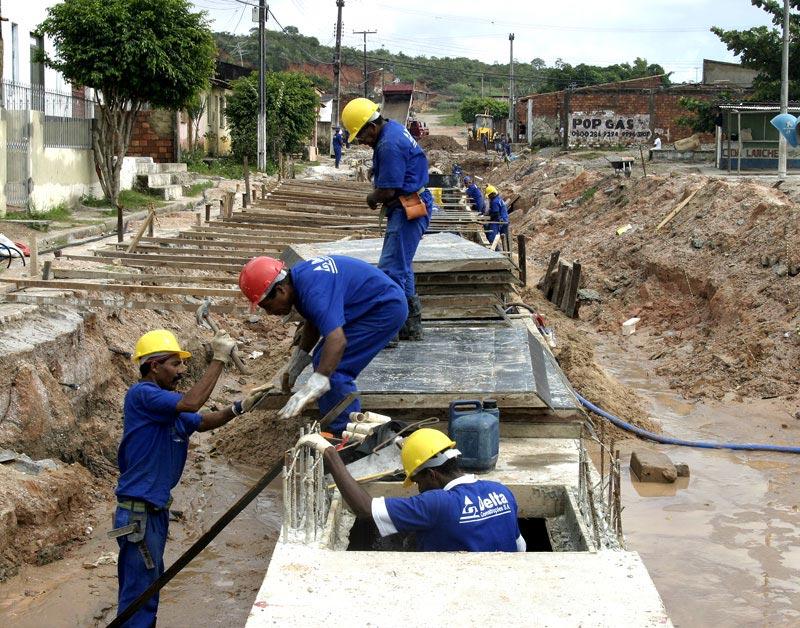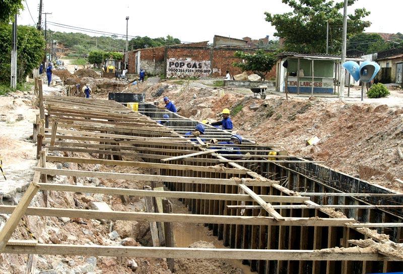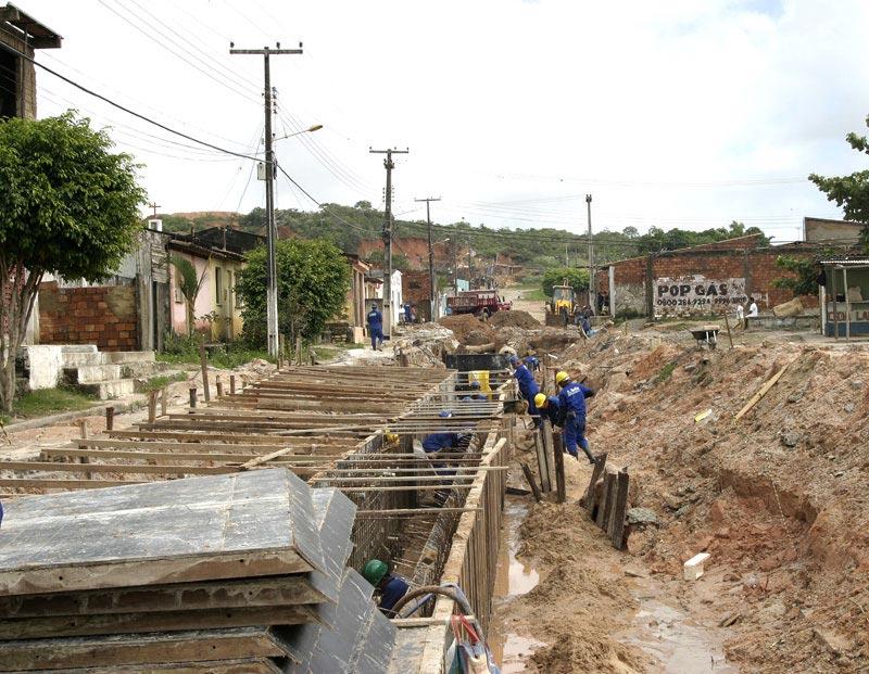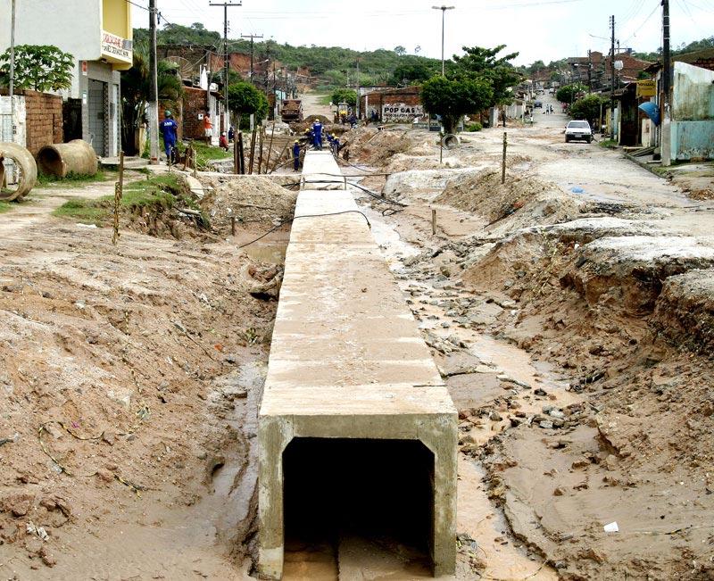 Iniciadas em abril, as obras de infra-estrutura no conjunto Padre Pedro começam a mudar o aspecto do local no bairro Santa Maria. Realizada pela Prefeitura de Aracaju, através da Empresa Municipal de Obras e Urbanização (Emurb), a obra que tem o orçamento de R$ 6,5 milhões, irá contemplar 70% das vias do conjunto. Ao todo são 16 ruas e 14 travessas que serão terraplenadas, drenadas e pavimentadas, além da construção de um canal para escoamento de águas pluviais. No momento, apesar da chuva constante, os 53 funcionários da empresa Delta Construções, responsável pela execução da obra, trabalham na drenagem de seis ruas que estão parcialmente concluídas. De acordo com o diretor de obras e operações da Emurb, Valmor Bezerra, algumas ruas já estão recebendo a drenagem tubular. Iremos trabalhar nessas ruas e travessas com a drenagem tubular, que irá permitir o deságüe de águas pluviais em um canal que passará por essas vias e se encontrará com o canal Santa Maria, explicou. Valmor Bezerra disse ainda que o canal passará pelas ruas e travessas e terá mais de 500m de comprimento. Esse canal irá impedir o acúmulo das águas nas ruas, evitando inclusive alagamentos e entupimentos, afirmou. As chuvas atrapalham um pouco o andamento das obras, mas assim que passar o período chuvoso em nossa cidade daremos um adiantamento considerável nos serviços, finalizou.