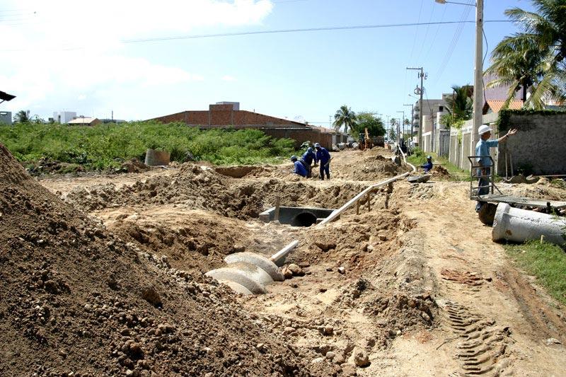 Através da Empresa Municipal de Obras e Urbanização (Emurb), a Prefeitura de Aracaju continua executando serviços de infra-estrutura nas ruas do bairro Atalaia. As vias estão recebendo serviços de drenagem, terraplanagem e pavimentação, objetivando sanar os problemas de alagamentos ocasionados pelas águas pluviais. Ao todo, três ruas (Atalaia, Bezerra de Menezes e Cônego José Félix) e suas transversais vêm passando por obras que visam melhorar a qualidade de vida dos moradores daquela região. Além disso, as obras pretendem acabar com os inúmeros problemas que há muito tempo incomodam a população daquela área. No momento uma equipe de 25 funcionários da SPR Engenharia Ltda está trabalhando na rua Bezerra de Menezes e suas transversais. Estamos terminando de colocar os PV (poço de visita) e as BL (boca de lobo), mas toda a tubulação já está concluída. Em seguida faremos a regulamentação do terreno que ficará pronto para ser pavimentado, explicou o mestre de obras, Genilson Mendes. A próxima rua a ser trabalhada será a Cônego José Félix. Com a melhora do tempo, estamos conseguindo adiantar bem o nosso trabalho. No meio da próxima semana já estaremos executando os serviços na rua Cônego José Félix, finalizou Genilson Mendes.