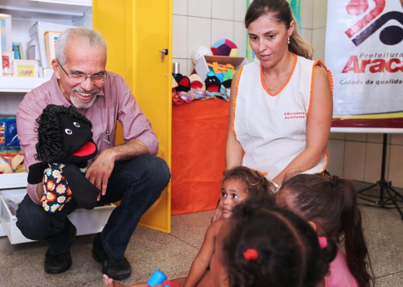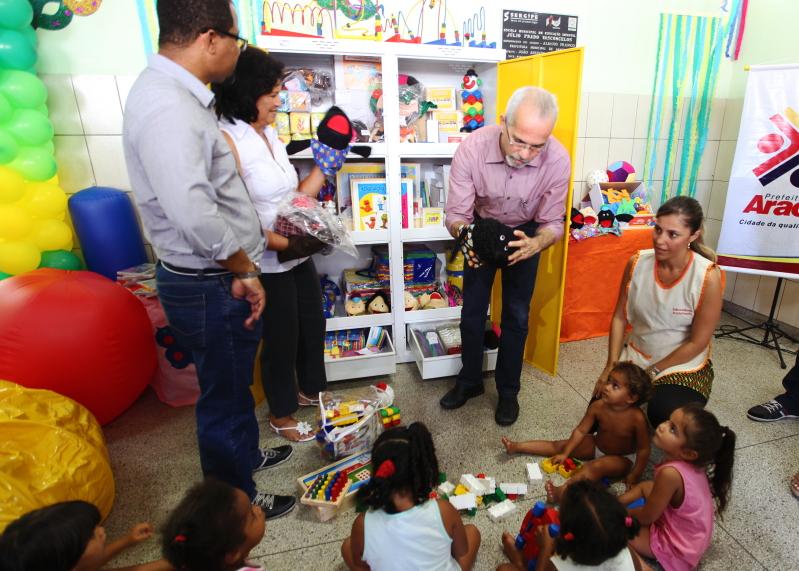 A manhã desta terça-feira, 14, foi de felicidade para as crianças matriculadas na Escola Municipal de Educação Infantil (EMEI) Júlio Prado Vasconcelos. É que o prefeito de Aracaju, Edvaldo Nogueira, esteve no local para lançar o projeto 'Brincar e Aprender', com a inauguração da brinquedoteca da escola que ganhou um kit composto por 155 brinquedos e DVD's infantis. Os equipamentos irão auxiliar os coordenadores e professores a oferecer uma educação de mais qualidade para os alunos que integram a rede municipal de ensino.