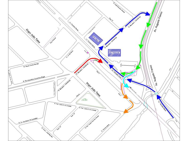 Ainda devido à obra, o semáforo do cruzamento da avenida Tancredo Neves com a Augusto Franco foi transferido para frente do Detran, local do novo desvio. O condutor que segue pela Tancredo Neves, sentido DIA, agora passará por um semáforo, antes de subir o viaduto. Já os que seguem no sentido oposto da avenida e desejam acessar o conjunto Sol Nascente deverão entrar na rua Moizete Leite Mendonça, entre o Detran e o posto de gasolina, acessar a avenida Augusto Franco e seguir para o novo retorno.
