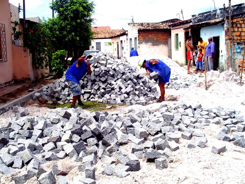 Os moradores do loteamento Manoel Garçom, no Bugio, estão acompanhando de perto os serviços que a Empresa Municipal de Obras e Urbanização (Emurb) está executando no local: a pavimentação em paralelepípedo das ruas Levi Alves Nogueira, Professora Maria Valdete e Antônio Farias Costa. A reivindicação dos moradores está sendo atendida pela Prefeitura de Aracaju, que investe na qualidade de vida da população da zona Norte da cidade. Com o andamento das obras, os moradores demonstram satisfação em ver a transformação do loteamento. "Aqui só existia lama e mato. Cheguei até a colocar placa de venda na minha casa, mas agora, com a rua pavimentada, jamais sairei da minha casa", comenta a dona de casa Ana Lúcia, moradora há 11 anos da rua Levi Nogueira. Já em fase adiantada dos serviços, no momento a Emurb está trabalhando com assentamento de meio-fio na rua Levi Alves Nogueira e executando o serviço de pavimentação em paralelepípedo nas ruas Professora Maria Valdete e Antônio Farias Costa. Ao mesmo tempo em que executa a pavimentação do loteamento do Bugio, equipes da Emurb também trabalham no conjunto Lourival Baptista, no Novo Paraíso, pavimentando com asfalto a rua Soldado João Ferreira. Na travessa Paraíba, no bairro Siqueira Campos, a pavimentação em paralelepípedo já foi executada e no momento a Emurb está construindo muros de contenção no local.