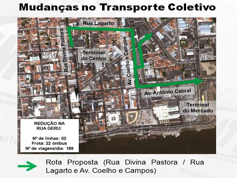 As linhas 035 – Terminal Rodoviário / Nova Saneamento e 400 CHB2 – Circular Hermes Fontes / Beira Mar 02, deixam de atender o ponto da Rua Geru, já que não passarão mais por esta via. Com a alteração as linhas ao saírem do Terminal do Centro, seguem pelas ruas Divina Pastora, Lagarto, avenida Coelho e Campos, avenida Antônio Cabral, Terminal Mercado, avenida Otoniel Dórea, avenida Rio Branco (Rua da Frente), seguindo para seus destinos finais.