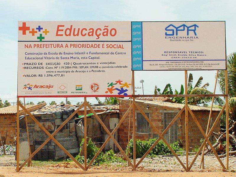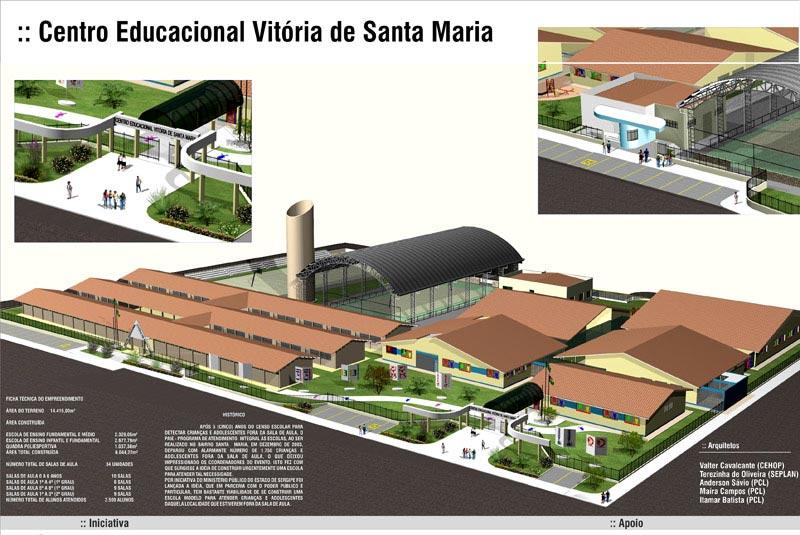 Em parceria com outras instituições, a Prefeitura de Aracaju deu início à construção da Escola de Ensino Infantil, Fundamental e Médio Vitória de Santa Maria, obra fundamental para a consolidação do projeto educacional pensado para o bairro Santa Maria, um dos mais carentes da capital. O Centro Educacional Vitória de Santa Maria foi idealizado a partir da necessidade verificada no diagnóstico do Ministério Público sobre a situação educacional do bairro, que encontrou cerca de duas mil crianças e adolescentes fora das salas de aula. Em parceria com o Governo do Estado, Petrobras (Fafen) e Ministério Público, o centro educacional será a maior escola pública de Sergipe. Além disso, o prédio abrigará uma Organização da Sociedade Civil de Interesse Público (Oscip). Estamos na fundação (colocação de placas de concreto) e na drenagem da área. A terraplanagem já tinha sido feita por outra empresa, diz o engenheiro responsável pela obra, Bruno Fernando de Sousa Cardoso, da SPR Engenharia. Segundo ele, os trabalhos efetivos tiveram início no dia 3 de outubro. Ainda de acordo com o engenheiro, a área que irá compor o ensino infantil e o ensino fundamental, constituirá cinco blocos (A/B/C/D/E). Serão 16 salas para educação infantil e fundamental, informa. Depois dos serviços de fundação, iremos abrir mais duas frentes para levantar as estruturas de pilares e vigas. Iremos dar continuidade as colocações de placas de concreto dos blocos A/B/C e D, pois a colocação a do E já está pronta. Essa é a nossa programação para os próximos dias, ressalta Bruno Fernando. O espaço do ensino infantil contará com dez salas para crianças de 0 a 6 anos, além de berçários de 0 a 1 ano, 2 e 3 anos, fraldário, brinquedoteca e parque. A extensão total da área a ser construída é de 13.747.28 m², de acordo com o técnico em edificações, Carlos Henrique Alves Santos. A obra faz parte do projeto Santa Maria Protege e já desperta a curiosidade das famílias do bairro. Várias pessoas vêm até aqui nos perguntar o que está sendo construído. Elas acham muito importante a idéia. Algumas mães até enfatizaram que os filhos querem muito estudar, mas elas não possuem condições de pagar transporte para eles, frisa Carlos Henrique. Convidamos o Ministério Público para mostrar um vídeo que trata sobre o aspecto social da obra para os nossos funcionários, pois a maioria reside no Santa Maria. Isso acontecerá em um projeto que é desenvolvido por nós da SPR, que é o projeto Bom Dia, onde conversamos com os funcionários todas as manhãs. O vídeo mostrará como surgiu o projeto, seu público-alvo, dentre outras coisas, pois esta é uma obra inédita, porque reúne vários parceiros, explica Bruno Fernando.