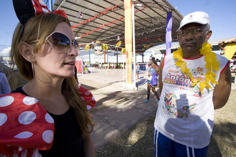 Já do Bugio veio uma simpática figura. Vestida de Nega Maluca e afirmando estar grávida, Antônia da Conceição não parava de dançar um minuto. “Isso tudo aqui está maravilhoso. Estou me divertindo muito. Adoro isso tudo”, fala. Antônia foi uma das muitas que vieram nos ônibus cedidos pela SMS. “Vim no onibus da Prefeitura. Ele foi pegar a gente no Pólo e trousse até aqui. Foi muito divertido”, relata.
