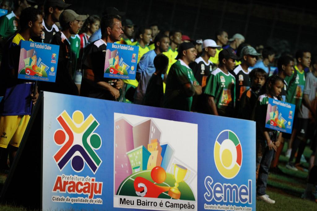 A Prefeitura de Aracaju, por meio da Secretaria Municipal de Esporte e Lazer (Semel), realizou no último sábado, dia 10, a abertura do Campeonato de Futebol Meu Bairro é campeão, categoria Adulta, no Campo do Anchietão, no Bugio. Na oportunidade, houve o desfile das 65 equipes e, em seguida, o jogo entre Indiana/Bugio e Nacional do bairro 18 do Forte. O evento, que vai durar quatro meses, integra a programação do Aniversário de 157 anos de Aracaju.