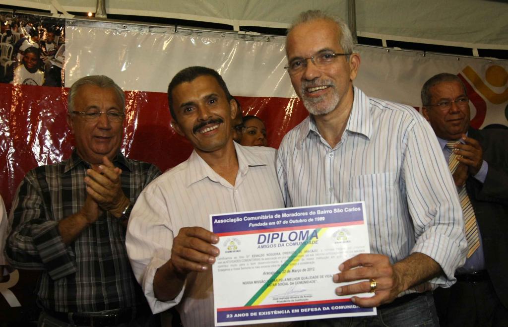 Durante a solenidade de assinatura, Edvaldo Nogueira foi homenageado com o diploma ‘Amigo da Comunidade', oferecido pela Associação Comunitária do bairro São Carlos, pelos serviços realizados na região.