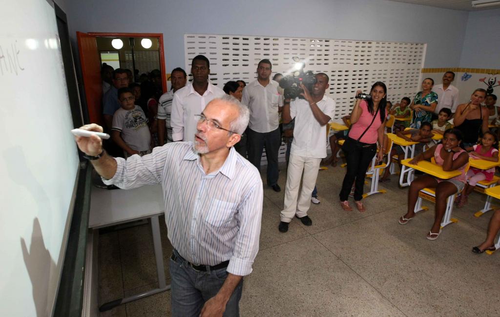 Ele demonstrou o funcionamento da lousa digital, deixando estudantes e mães de alunos eufóricos com a novidade. "Investir na educação é investir no futuro dessas crianças que poderão concorrer em pé de igualdade com as crianças que estudam nas escolas particulares", disse emocionado.