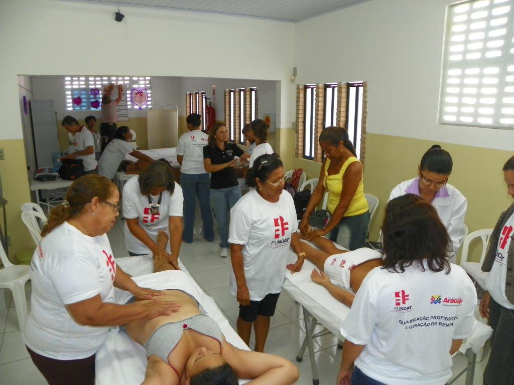A massoterapia é uma área em ascensão no mercado de trabalho. Faltam profissionais e, aqueles que se qualificam e formam um nicho de clientes, passam a ter uma renda mensal considerável. Com uma visão voltada para a real demanda de mercado, a Prefeitura de Aracaju continua oferecendo o curso de massoterapia. Desta vez são 25 pessoas que estão buscando a profissionalização na unidade/escola da Fundação Municipal do Trabalho (Fundat). Desse número, são 23 mulheres, cuja maioria está acima dos 40 anos; é dona de casa e pretende desempenhar a função, promovendo uma mudança "radical" na vida.