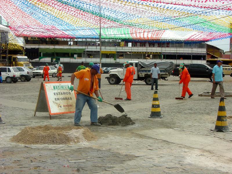 Na contagem regressiva para o início do Forró Caju 2006, a Empresa Municipal de Obras e Urbanização (Emurb) está trabalhando a todo vapor e ultimando os preparativos para dotar a área do Centro Histórico da infra-estrutura necessária, oferecendo conforto e segurança às milhares de pessoas que todas as noites irão se divertir na festa. Para contribuir com o sucesso da festa, duas equipes estão recuperando o pavimento das ruas localizadas nas imediações dos Mercados Albano Franco e Thales Ferraz. Uma equipe faz o serviço de recuperação da pista da avenida Otoniel Dórea e da travessa Hélio Ribeiro. As ruas Cônego Serapião Machado e José do Prado Franco e a travessa Sebastião Costa já foram recuperadas pela empresa. Além de melhorar a malha viária do centro da cidade, outra importante ação da Emurb foi desenvolvida na área adjacente ao Centro Histórico. Para prevenir possíveis alagamentos e proporcionar um escoamento rápido das águas das chuvas que ocorrem com freqüência nessa época, equipes da Empresa recuperaram a rede de drenagem e desobstruíram as bocas-de-lobo nas áreas dos mercados e nas ruas Santa Rosa, José do Prado Franco e Avenida Otoniel Dória. Um grande arraial para as quadrilhas juninas se apresentarem já recebeu os últimos retoques. Este ano, ele foi montado entre a área de comercialização de flores e a Rua José do Prado Franco. O vendedor de caldo de cana e pastel, Carlos Silva, disse que há três anos trabalha no local, mas que este ano, com o arraial das quadrilhas juninas montado nesse novo espaço, a expectativa de vender mais é muito grande. Gostei muito dessa idéia de trazer o palco para esta área, porque vamos ter muitos turistas e sergipanos que gostam de ver as quadrilhas juninas se apresentando, vibra. Trabalhamos com muito empenho e preparamos toda a região do Centro Histórico para receber o imenso público do Forró Caju, oferecendo o maior conforto possível. Seguindo a orientação do prefeito Edvaldo Nogueira, fizemos uma grande ação no local para ampliar ainda mais o sucesso dessa festa, que projeta o nome da cidade de Aracaju em todo o país, destaca o presidente da Emurb, engenheiro Valmor Barbosa Bezerra. A partir de hoje, a alegria do São João levará para a festa uma multidão de sergipanos e turistas durante os 14 dias do evento, atraídos pela qualidade da programação, das comidas típicas do período junino e da segurança proporcionada ao público. Em especial nesse período, Aracaju mostra a sua cultura para o mundo, realizando um dos maiores festejos juninos do país, que este ano está em clima de Copa do Mundo.