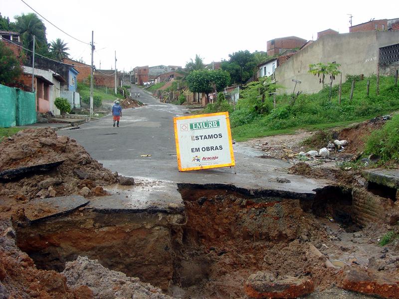 Nesse período de chuvas, equipes da Empresa Municipal de Obras e Urbanização (Emurb) detectaram alguns pontos de alagamentos no bairro Santos Dumont, provocados principalmente por dejetos que foram trazidos pelas águas e acumulados na rede de drenagem. Para solucionar esse problema, o presidente da Emurb, engenheiro Valmor Barbosa Bezerra, encaminhou uma equipe para executar a limpeza de bocas de lobo e recuperar a rede de drenagem. Com esse serviço, as águas das chuvas terão uma melhor vazão, acabando com os alagamentos na área. Morador da rua Sargento Brasiliano há 35 anos, o aposentado Eduardo Silva disse que nesse inverno a sua rua ficou muito alagada. Estou satisfeito com o serviço que a Emurb está fazendo. A gente estava numa situação muito difícil, pois chegou um momento em que as águas estavam quase entrando nas nossas casas. Isso acontece porque, mesmo a Emurb fazendo freqüentemente a limpeza das bocas de lobo, a população não ajuda, jogando muito lixo nas ruas, argumenta o morador. Próximo ao local, equipes da Emurb também estão trabalhando na avenida A, no bairro Cidade Nova, recuperando parte da pista que sofreu afundamento e estava prejudicando a população. O serviço está sendo executado no trecho da pista até a rua Santa Terezinha. Além desses locais, as equipes de recuperação da rede de drenagem também trabalham na Av. Álvaro Maciel (Palestina) e nas Ruas Hélio Santana (Lot. Cigano), Urandi Santos (Lot. Cigano) e Carlos Gomes (Ignácio Barbosa).