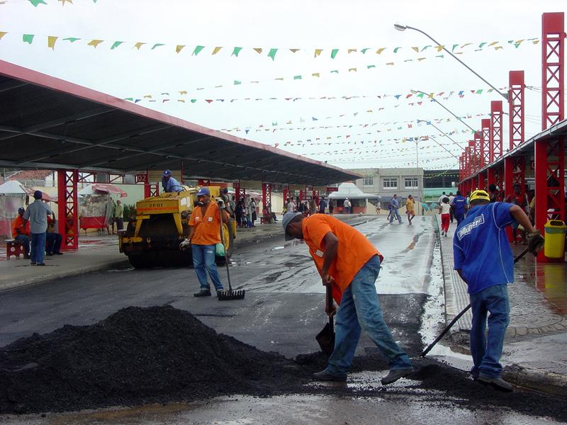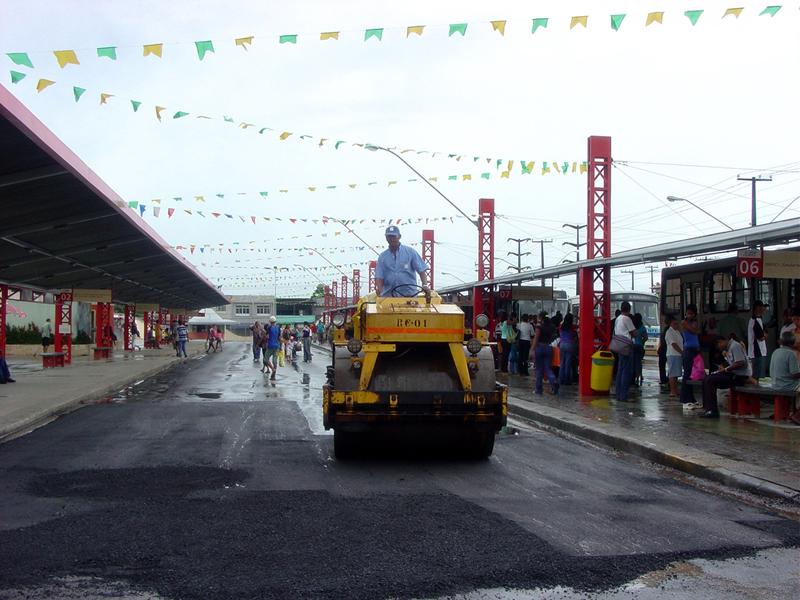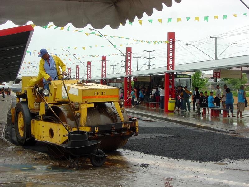 O grande tráfego de veículos pesados dentro do Terminal de Ônibus Maracaju, no bairro Santos Dumont, provocou uma série de afundamentos no seu pavimento interno, causando alguns transtornos para os seus usuários. A partir das solicitações da população que passa diariamente no local para que a área fosse recuperada, o presidente da Empresa Municipal de Obras e Urbanização (Emurb), engenheiro Valmor Barbosa Bezerra, encaminhou uma equipe para recuperar toda a pista e oferecer melhores condições de tráfego para os motoristas que transitam naquela localidade e conforto aos passageiros. Acompanhando de perto a execução dos serviços da Emurb, o agricultor Diógenes Silva falou que os buracos estavam prejudicando a passagem dos ônibus ao chegarem ao Terminal. A gente até mudou de local para pegar o ônibus. Com os afundamentos que existiam, toda vez que o ônibus ia encostar espanava água no povo. Agora a gente vai poder voltar a pegar o ônibus no local certo. Ficou ótimo, estamos satisfeitos, comenta. Além dos serviços de tapa buraco executados dentro do Terminal Maracaju, outra frente de trabalho recuperou as ruas adjacentes. Fiquei surpresa ao chegar hoje para pegar o ônibus. Foi só a gente pedir que a Emurb providenciou o serviço. A gente se sente valorizado ao saber que o poder público municipal está atento às nossas reivindicações, comemora a assistente administrativa Elisângela Duarte, que usa o terminal todos os dias para ir trabalhar.