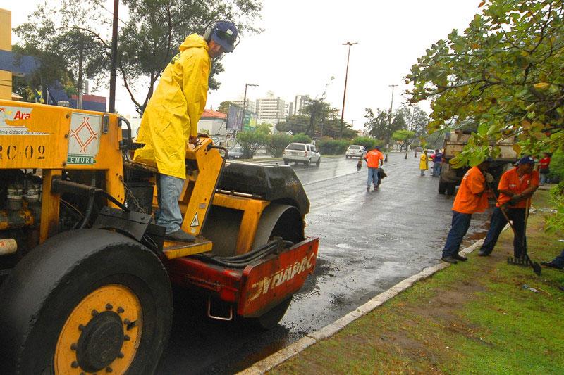 A Empresa Municipal de Obras e Urbanização (Emurb) deve concluir ainda esta semana o recapeamento asfáltico do trecho da avenida Beira Mar compreendido entre a Universidade Tiradentes (Unit) e o Parque dos Cajueiros. Na obra, iniciada no último dia 9, a Emurb está aplicando 500 toneladas de concreto asfáltico, o que dará fim aos buracos e declives hoje existentes, uniformizando a via e beneficiando o trânsito em uma das regiões mais movimentadas da capital sergipana. Segundo Antônio Vasconcelos, diretor de obras e operações da Emurb, o trecho hoje em reforma faz parte de um projeto mais complexo de recapeamento, que começa no Parque dos Cajueiros e termina na Avenida Santos Dumont, iniciado em fevereiro deste ano, e que consumirá ao todo 9,6 mil toneladas de concreto asfáltico. As constantes chuvas, no entanto, obrigaram a Emurb a suspender a obra, que só foi retomada agora, com o fim do inverno. Todo o restante da obra já havia ficado pronto. O problema é que, quando chegamos neste trecho, começou a época das chuvas. E a água inviabiliza este tipo de trabalho. Continuamos o serviço e acreditamos que não vai durar mais de uma semana, informou. Ainda de acordo com Vasconcelos, 25 funcionários da Emurb executam serviços para retirar os desníveis da rua, entre caçambeiros, operadores de máquinas, encarregados e apontadores. A antiga camada de asfalto tinha mais de dez anos de aplicação e já estava toda comprometida, observou.