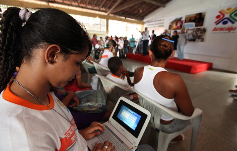 No último dia 9, na Escola Municipal de Ensino Fundamental (Emef) Olga Benário, localizada no bairro Santos Dumont, o prefeito Edvaldo Nogueira realizou a primeira entrega dos computadores portáteis, beneficiando então 1.015 alunos. Também já são beneficiados com o programa os 540 alunos da Emef Professora Maria Thétis Nunes; 1.072 da escola Santa Rita de Cássia; 802 alunos da Escola Municipal Juscelino Kubitscheck.