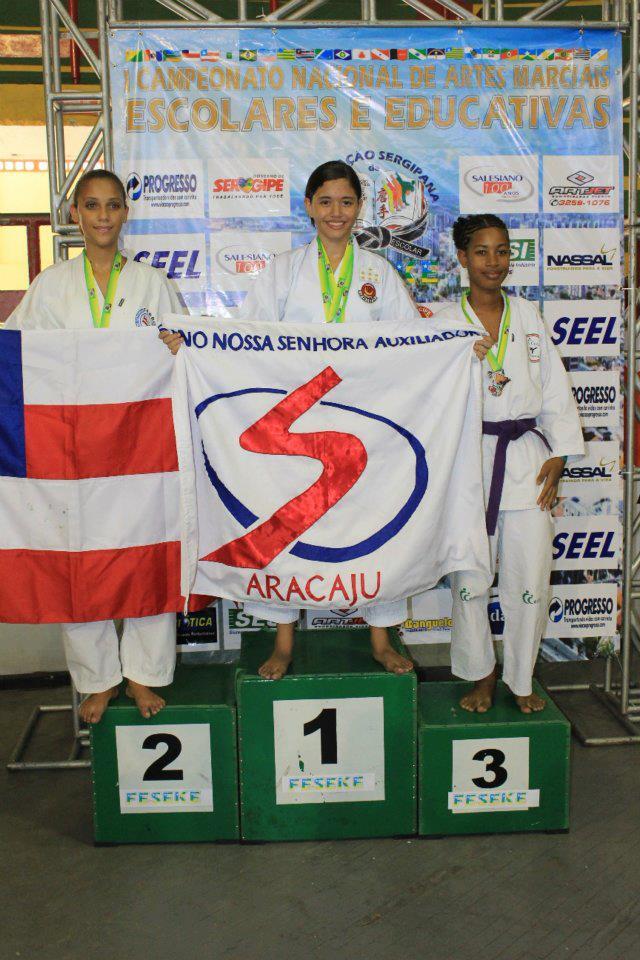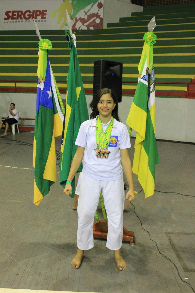 A bolsa-atleta e carateca da Prefeitura de Aracaju, Yonara Yasmim, 14 anos, ganhou quatro medalhas de ouro no I Brasileiro de Artes Marciais Escolares Educativas, nas categorias kata individual feminino e no kumite, realizado no Ginásio Constâncio Vieira, na capital sergipana.