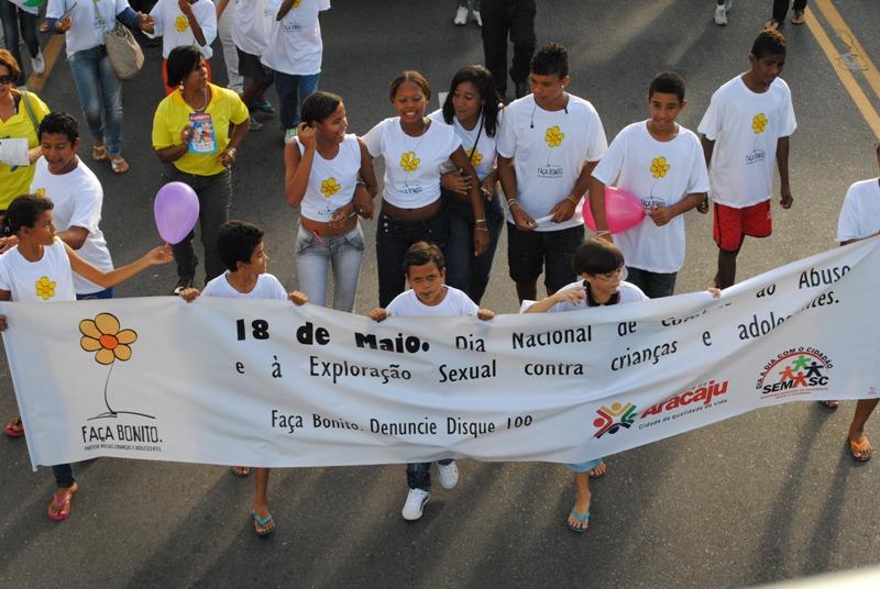 Com a participação de diversos órgãos governamentais e não governamentais, a Prefeitura de Aracaju realizou na tarde desta sexta-feira, 18, uma grande caminhada pelas principais ruas do Centro comercial da cidade, pedindo o fim da violência sexual contra crianças e adolescentes. A caminhada teve como ponto de concentração a praça da Bandeira e seguiu pela avenida Barão de Maruim, rua Itabaiana, Calçadão da João Pessoa e encerrou-se na praça Fausto Cardoso.