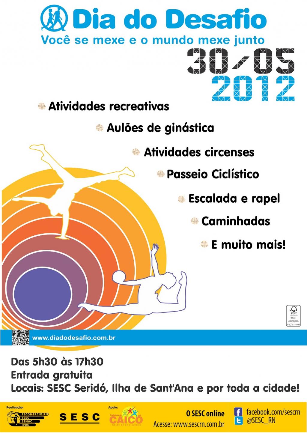 Nesta quarta-feira, 30, vai acontecer o Dia do Desafio que tem o seguinte slogan: "Você se mexe e o mundo mexe junto". No Brasil, Aracaju e Florianópolis disputarão quem consegue mobilizar a maior quantidade de pessoas praticando algum tipo de atividade física. Como não poderia ser diferente, a Secretaria Municipal de Esporte e Lazer (Semel) estará presente.